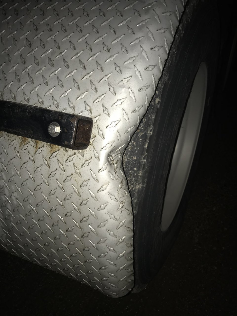 I knew something hit me tonight but couldn’t figure out where until now. Just west of St. Cloud a chicken hauler was passing me when I heard and felt a hell of a bang. I looked over and there sparks and shrapnel flying everywhere. I felt something hit my truck and I smelled diesel fuel so I pulled over right away but couldn’t find nothing wrong with my truck so continued on my way. D1F20E9C-FA60-4B57-9848-B9B25A5CD652.jpeg