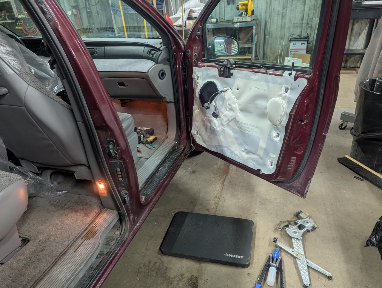 The van will be getting new rear hubs, shocks, a rack and pinion and cv axles. Today was the window motor and regulator.