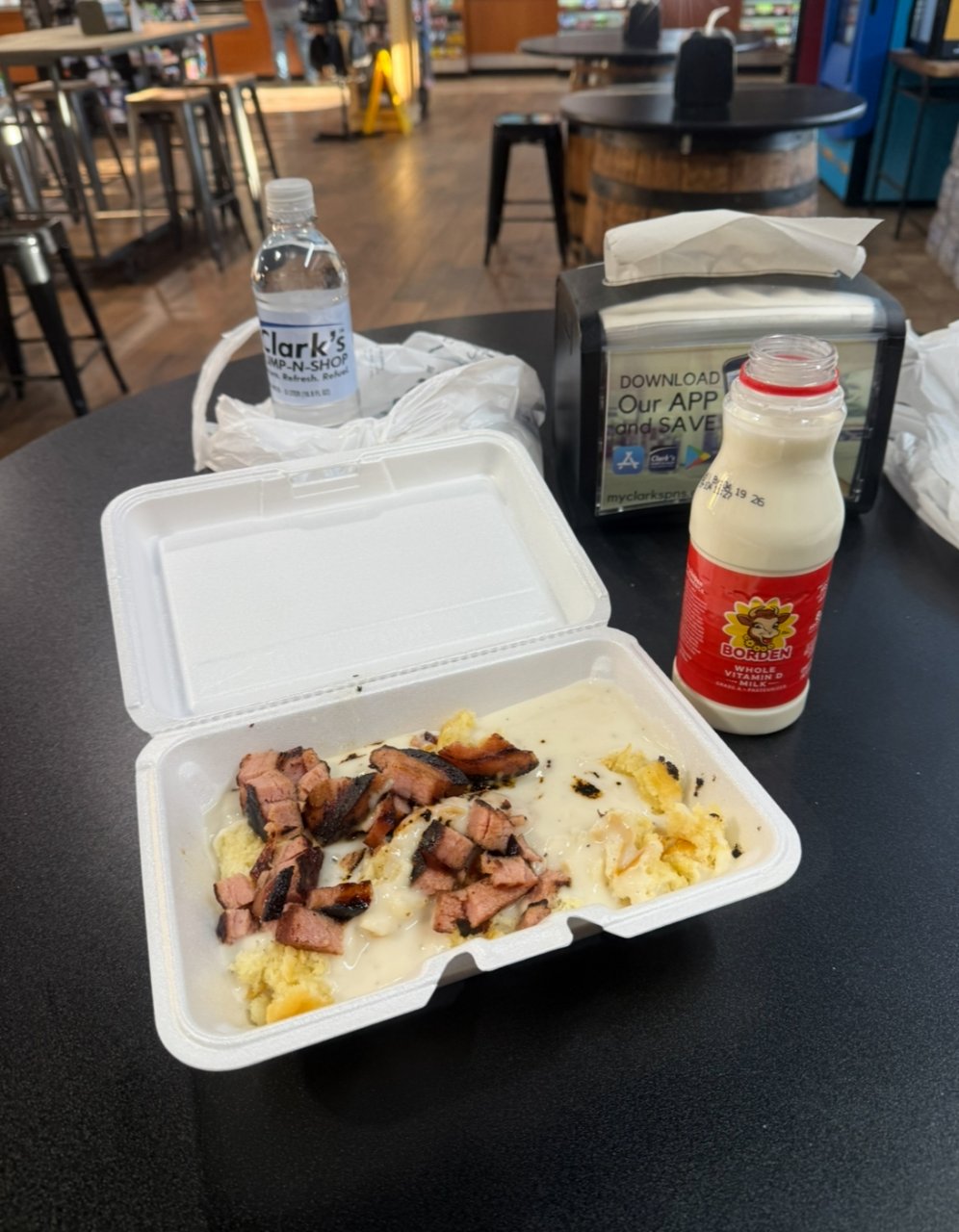 Stopped at my usual choke and puke in Olive Hill, question was did I want a free biscuit and gravy with bologna in it…. Sure no need of wasting it…..