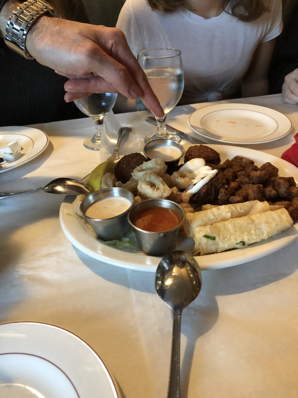 Calamari (what’s that squid or octopus @Hurricane69? The kids like it) fried eggplant w white something sauce, falafel (ground up chick peas fried in a blob), fried liver balls (I tried and almost wretched for real) and cigaro some #### which is like salty cheese in a puff pastry wrapper- I’d serve that at any party it was gooooooood.