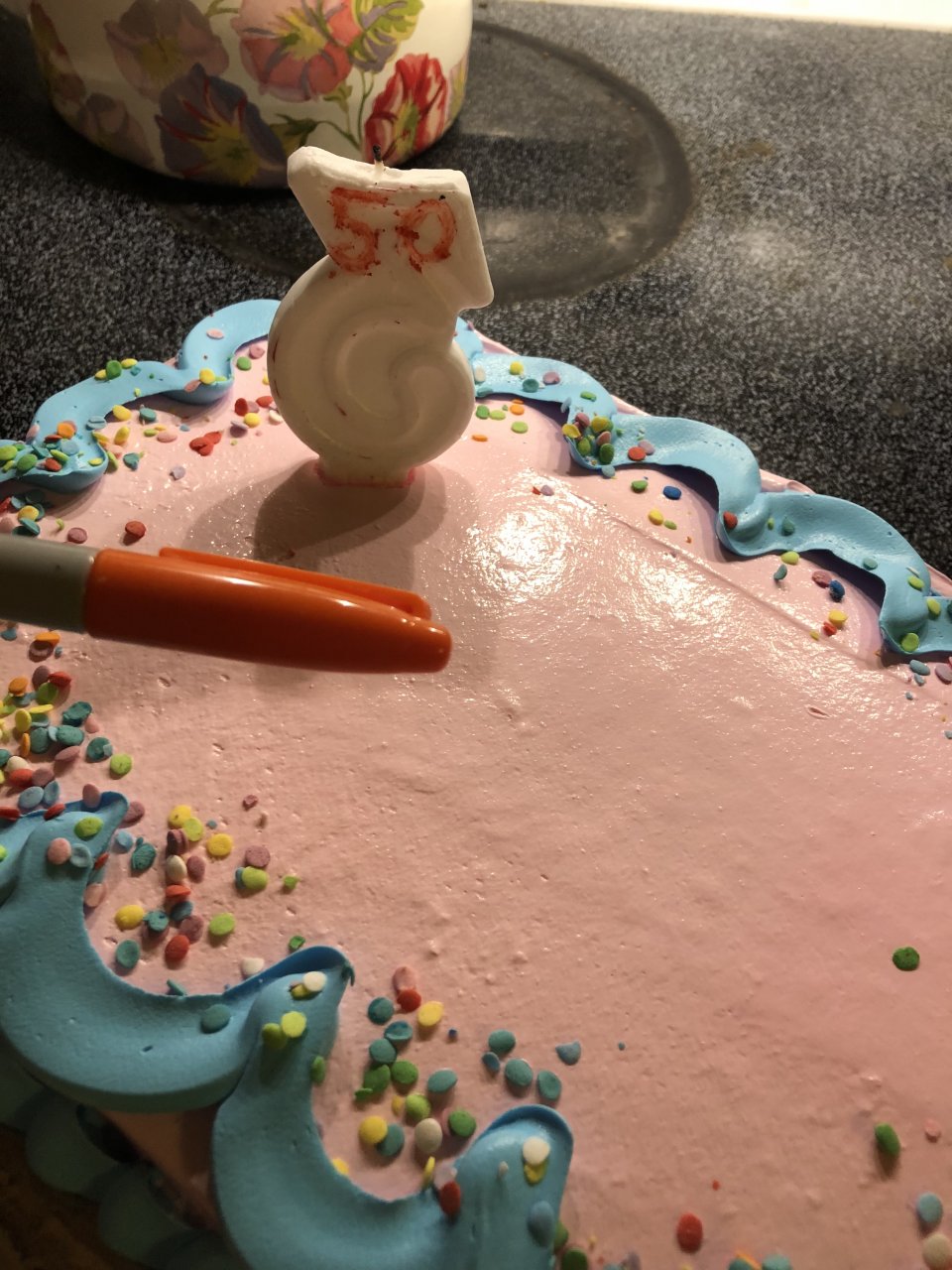Realized halfway thru dinner I forgot to get birthday candles- I got it did anyway w the one candle we had.