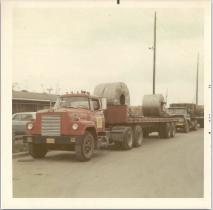 So last one for the night. 1971 Newport News Va. I think its a 1964 S model 513 gasser and about a 1950's Brown or Dorsey trailer. The Bankrupt Express. Leased on to Hennis Freight Lines. They threatened to terminate lease if he didn't remove the name from the hood. His first ride as a owner op. Purchased 1970 for 6500.00 truck and trailer.