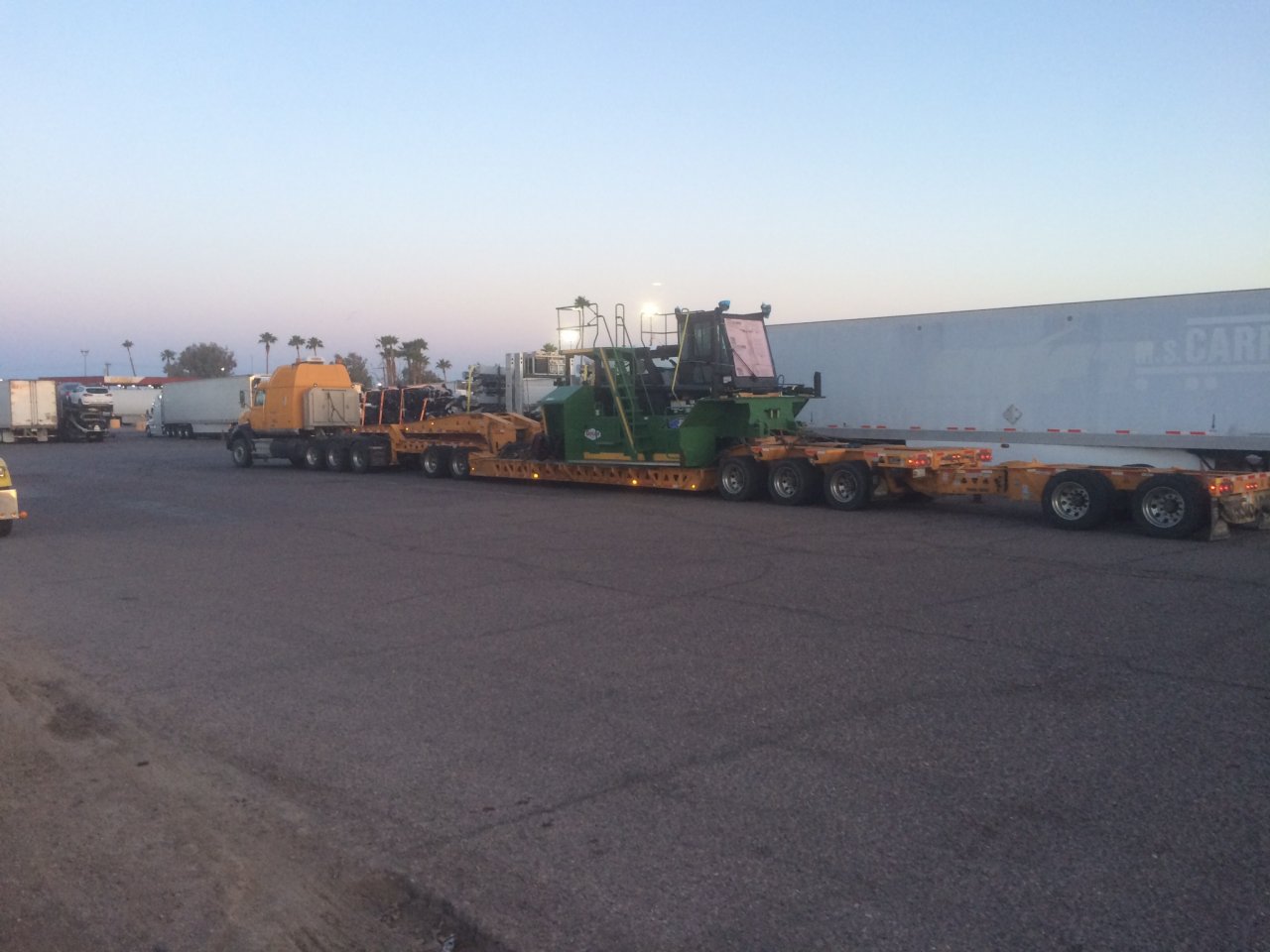 72000 lbs with counter weights less boom. Off set it with 4 inches of track on trailer rest on out rig board track opposite counter weight rack. Hauled most of the popular sideboom 583k, h, t. 587t, 594, pl-83, pl-87, lieber rl-54, superior 960 and alot of 330,336, 349, 345 hoes. Also D8t, D8r, d6, D7 from standard to lgp. A few articulating trucks and a few scrapers. Also grove cranes Verious sizes. Various milling machines and presses. Mantawac cranes. Last few yrs just all the "yellow iron".