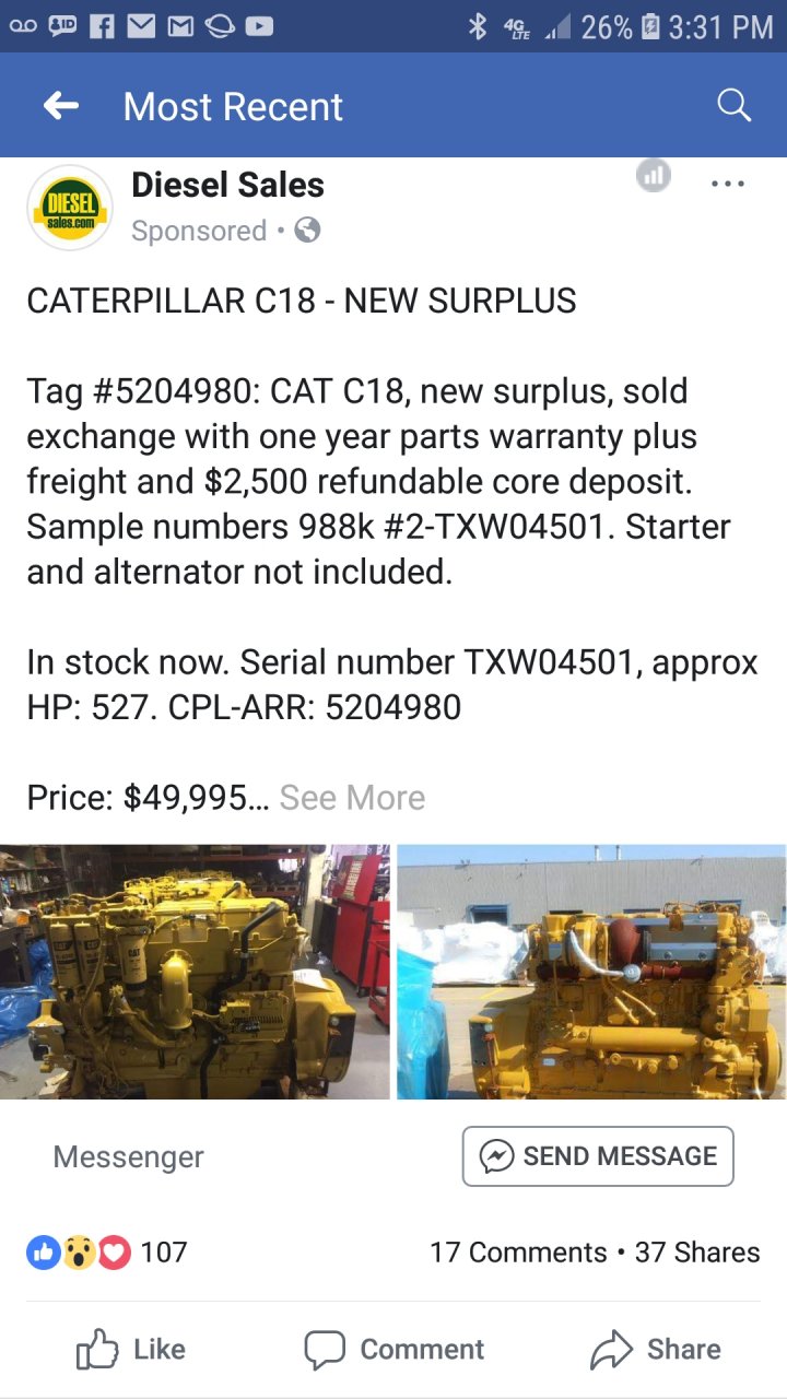 Last year someone north of me had a C27 out of a morbark shredder. Now, idk how much hood a man would have to add....OLDSKOOLERnWV, peterbilt_2005, Oxbow and 19 others Thank this. -