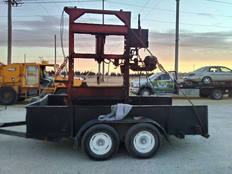Wednesday, I'll clean it up and see if I can find a tag on it. It says "Dake" on the front of the bed. There's no oil in it right now, but we found it it conveniently stored on the floor underneath all the junk piled around it. After a bath and a few replacement hoses, it should be time to bend some steel. I only gave $350 for it. So a few dollars for repairs shouldn't hurt at all.