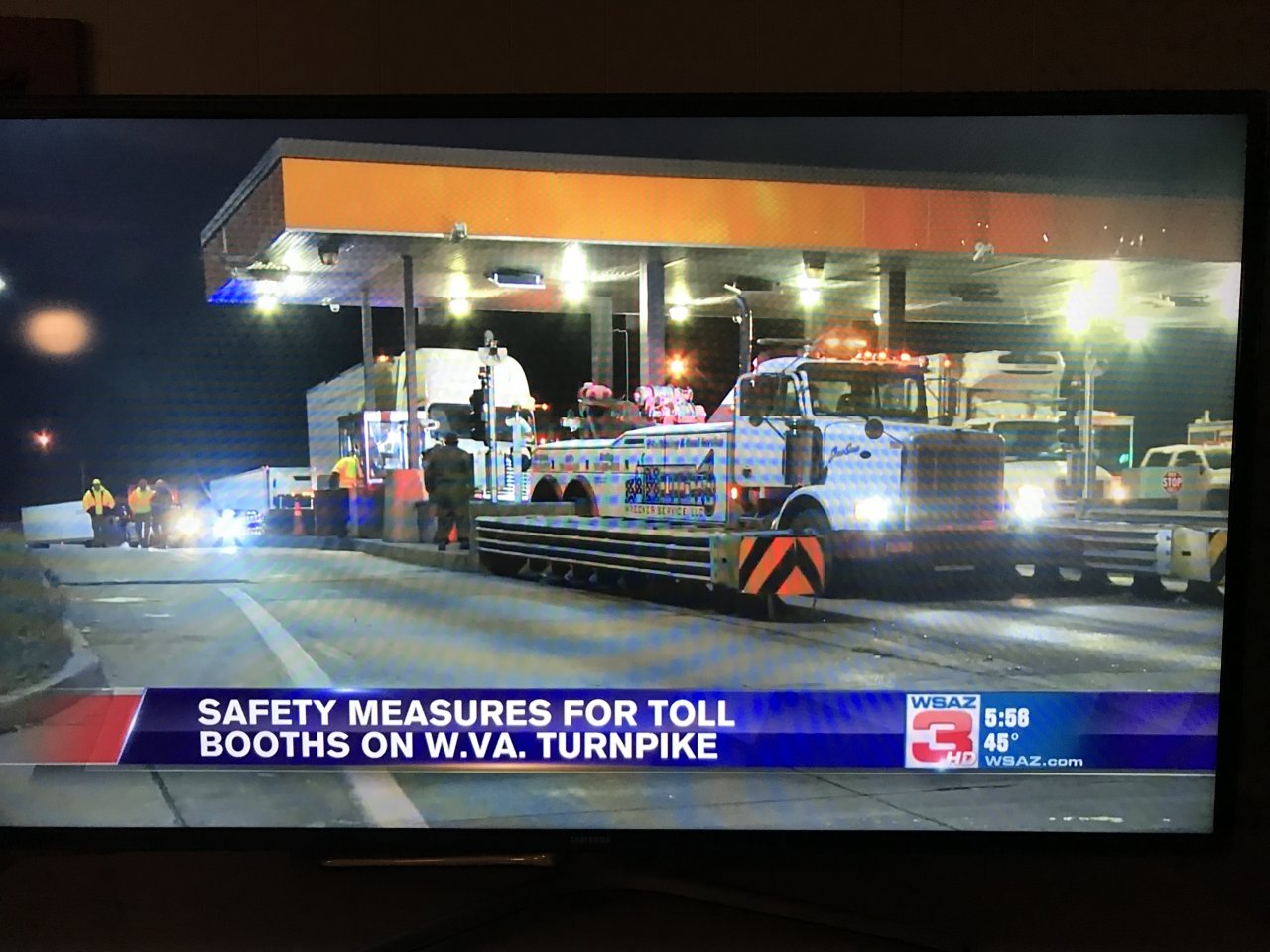 Night before last, headed up highway 7/Chickasaw Turnpike, I noticed the toll booth exit was blocked off and had flashing lights. I have Pike Pass so I just roll through, but couldn’t help but notice the fancy tan Pete that the wrecker was hooking up to, had obviously rear-ended somethin right there where you pay the toll. They must’ve already hauled whatever it was off, but that Pete had some pretty heavy front end damage.