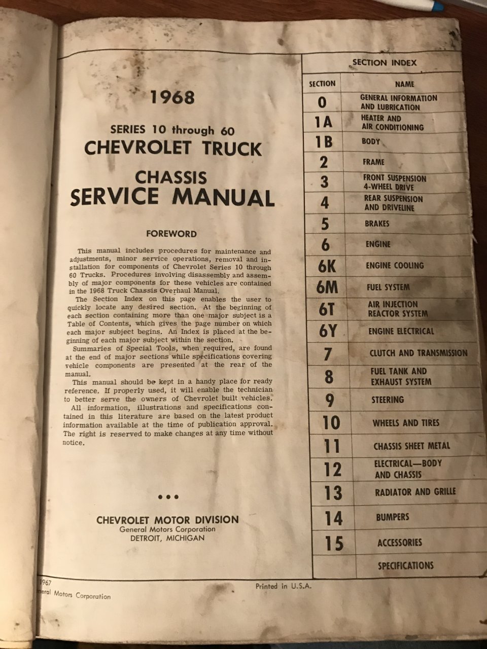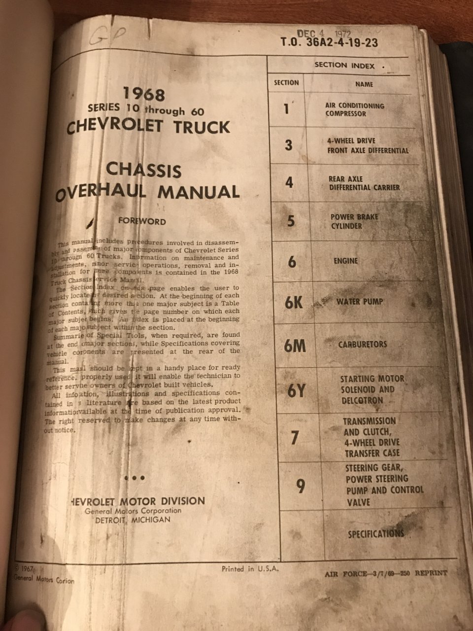 Got a few minutes to look in my personal library..... I have the truck version of the 68 manual. Actually 2 manuals together.