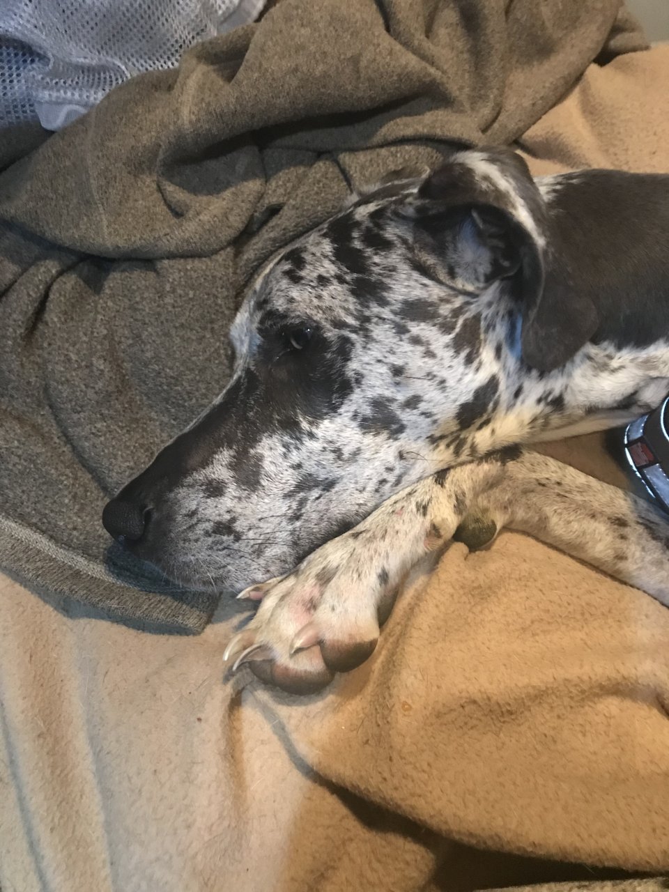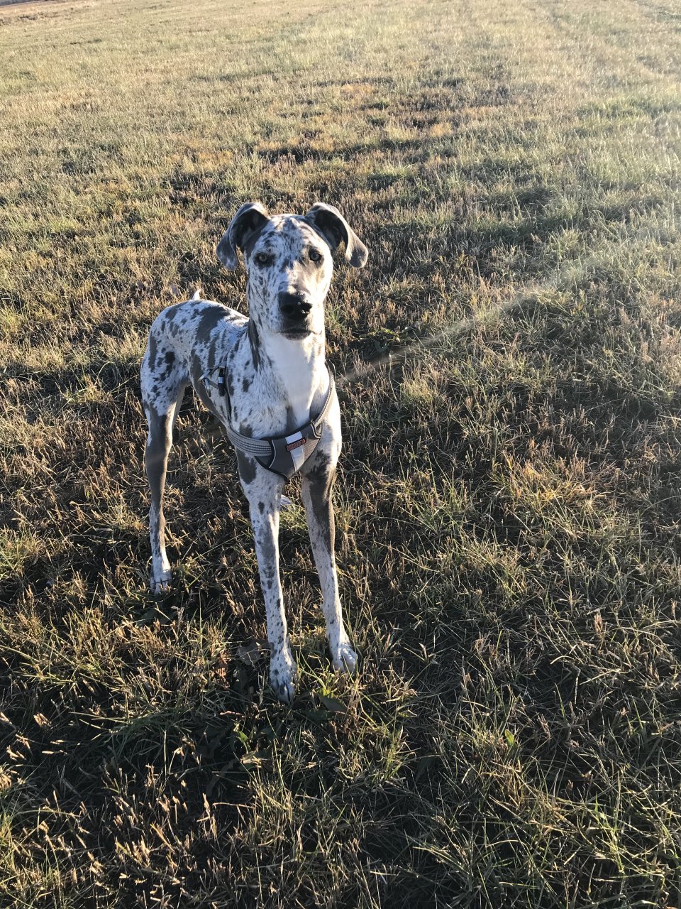 But she is the smallest Dane in the history of Danes. She is only 80 lbs or so, exactly what I was hoping for. She really only requires minimal daily activity because Danes are giant breeds and tire quickly. She is reall just a big lap dog except around @truckdad amd then she a blood thirsty ferocious beast.