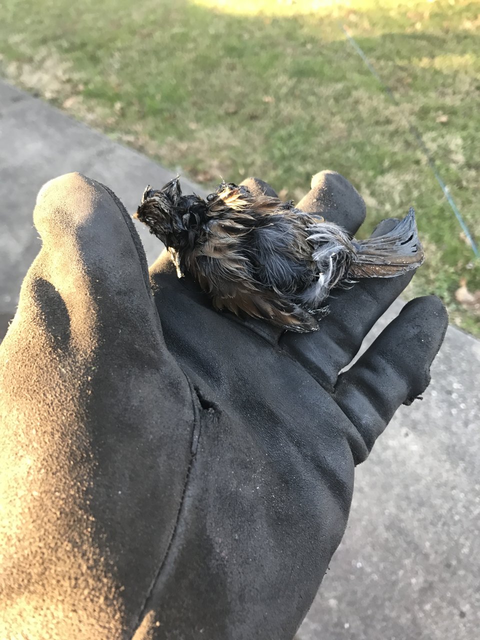 Washing my mule today and found this guy buried in the grease on the 5th wheel.... my wife cleaned him up best she could with dawn. Got him downstairs hoping he makes it.