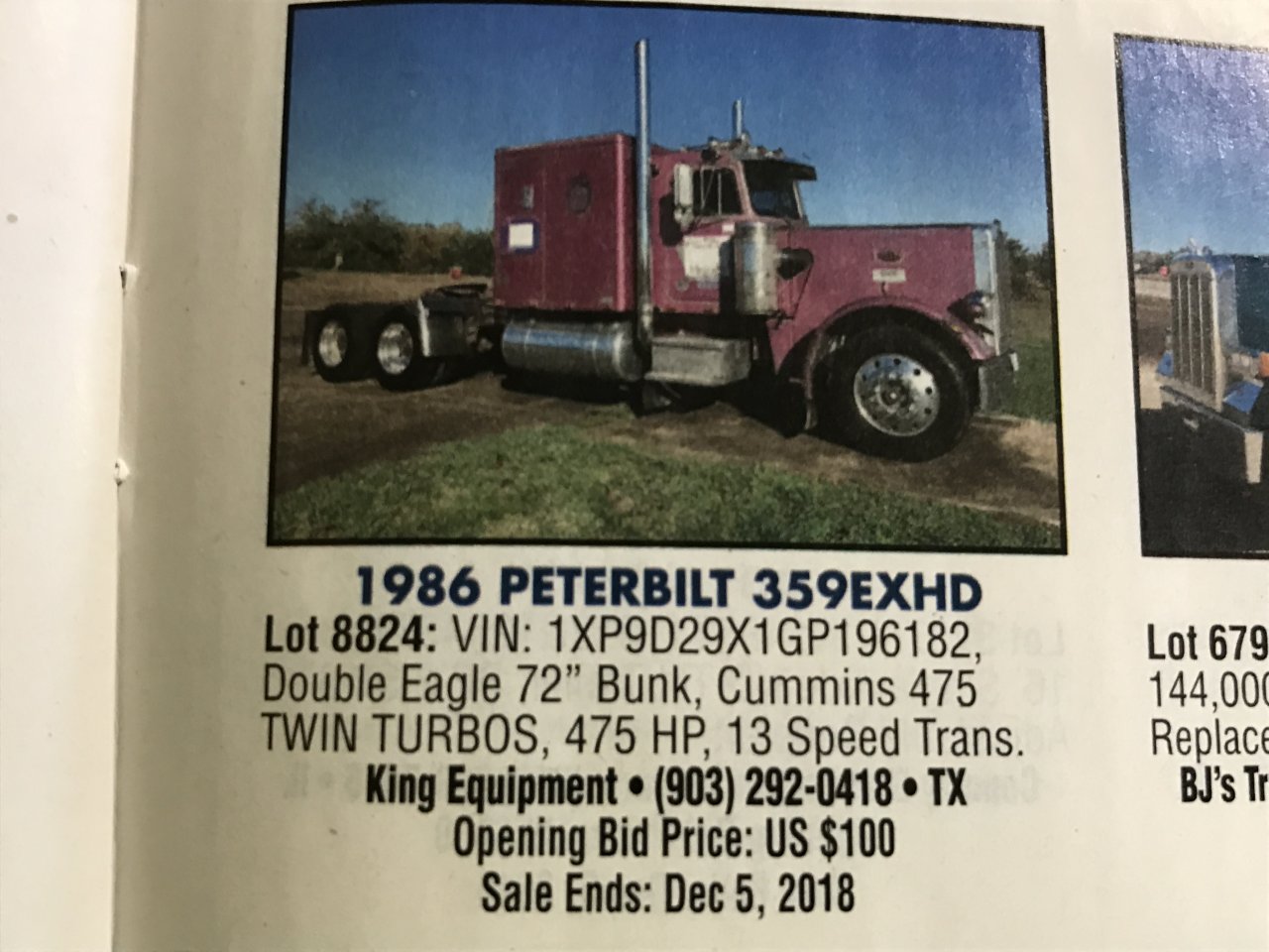 Have a buddy looking to sell this. 2000 with 475 Cat, 18 speed. Salvage but it only was hit in hood and rad. Everything has been fixed under hood with new parts. Needs interior installed, needs paint and tires. Run drives fine. Don't know major history. If you like purple.