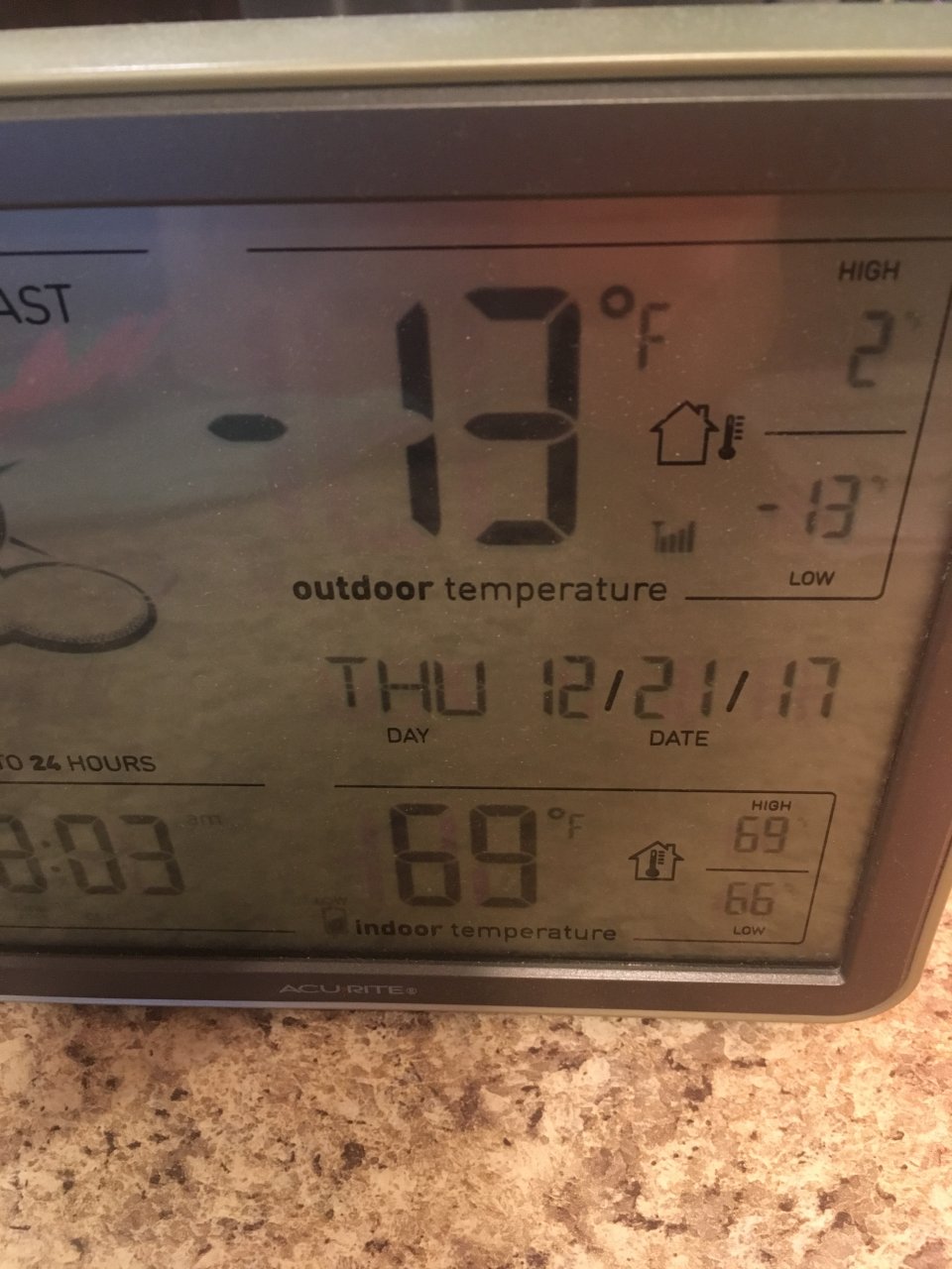 Just a tad cold this morning, winter has arrived! We got about 3 inches on the ground from the last system that moved through on Wednesday.