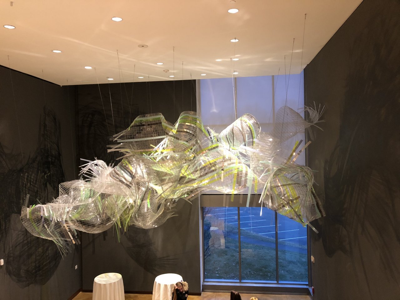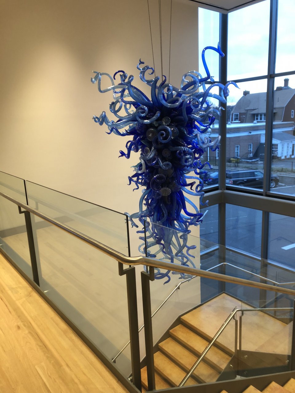 Blue one was all blown and stretched colored glass. The other one was like plastic ribbon that was like 2 1/2 to 3 inches wide all woven through some net mesh.