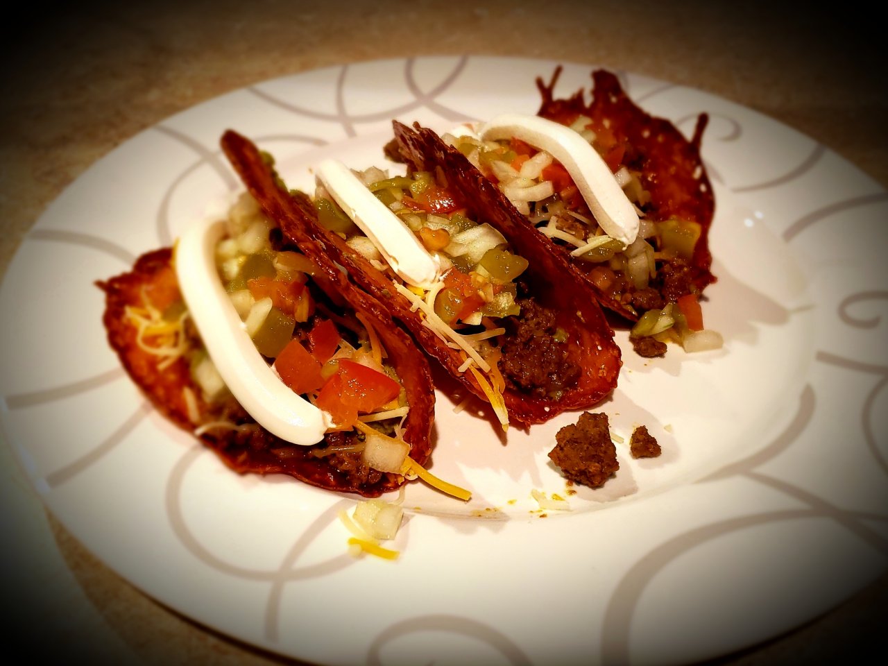 Tonight's bachelor kitchen food porn. I've had a craving for some tacos for a couple weeks. Decided I could come up with some "keto friendly" tacos since the average taco shell is somewhere between 12 and 16 grams carbs and certainly not good carbs. Refried beans also add to that carb count. So here's my reengineered tacos. Shells are made from the Kirkland brand Mexican cheese blend, meat is center cut sirloin that I grind myself, taco seasoning is my own "blend", pico is fresh hatch green chili, onion, tomato and lime with a pinch of alder smoked Himalayan sea salt and finally the "paste" to line the shell is just mashed avacado with some lime juice.