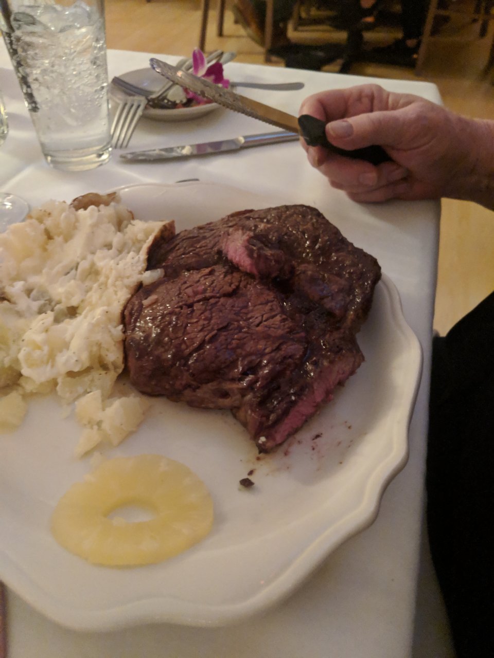 Mom had the petite cut ribeye (18 oz)
