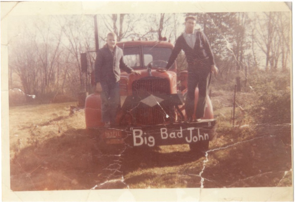 This is about 1961 Dad on the left and Gramps on the right. The Song Big Bad John was a hit. 1956 LJ Mack with a 300HP Cummins. Not sure if it was original or transplanted, Mack duplex. Single drive, belt drive tandem. They couldn't afford much and built what they wanted.tony97905, Slowpoke KW, johndeere4020 and 26 others Thank this. -