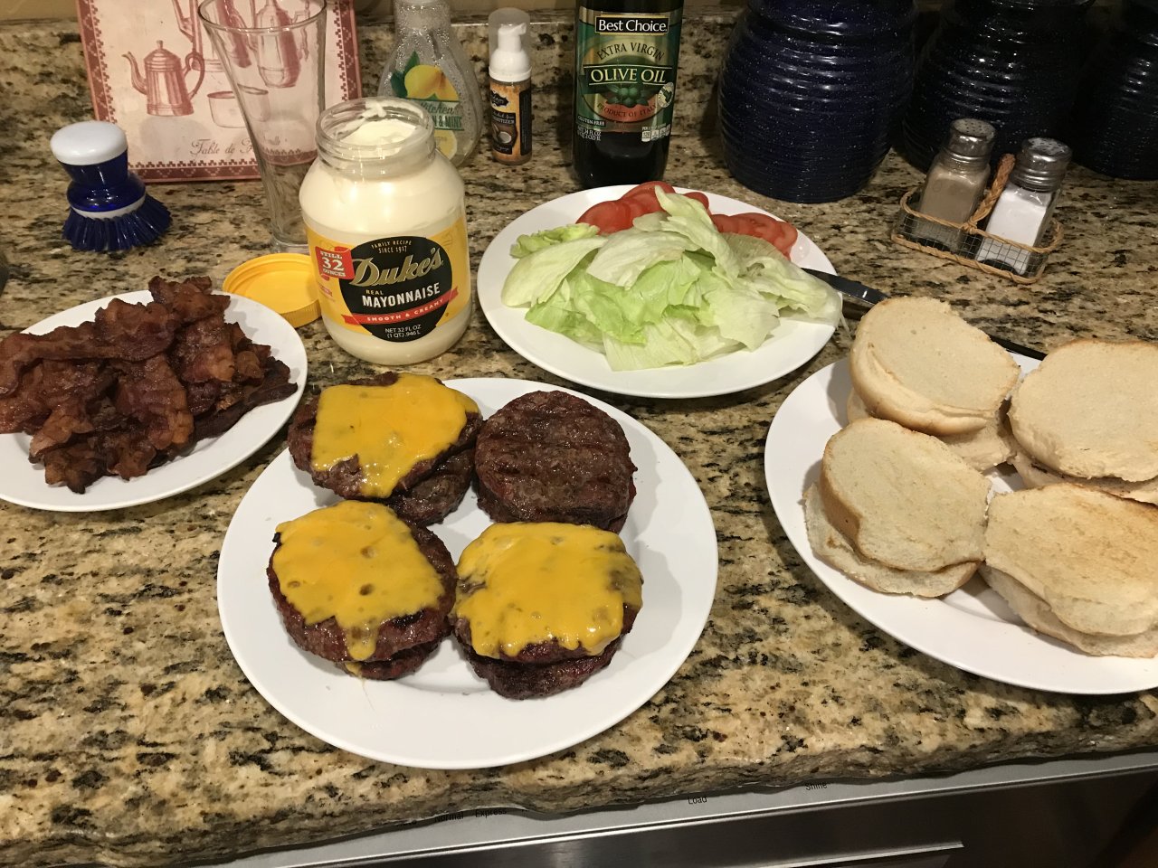 Plain old cheese bacon burgers and chili cheese tater tots tonight.