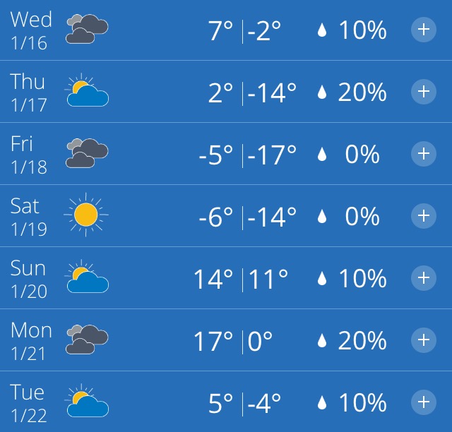 Here is our forecast for the next 5 days or so. These temps are in Fahrenheit.Feedman, Oxbow, BigCam9670 and 20 others Thank this. -