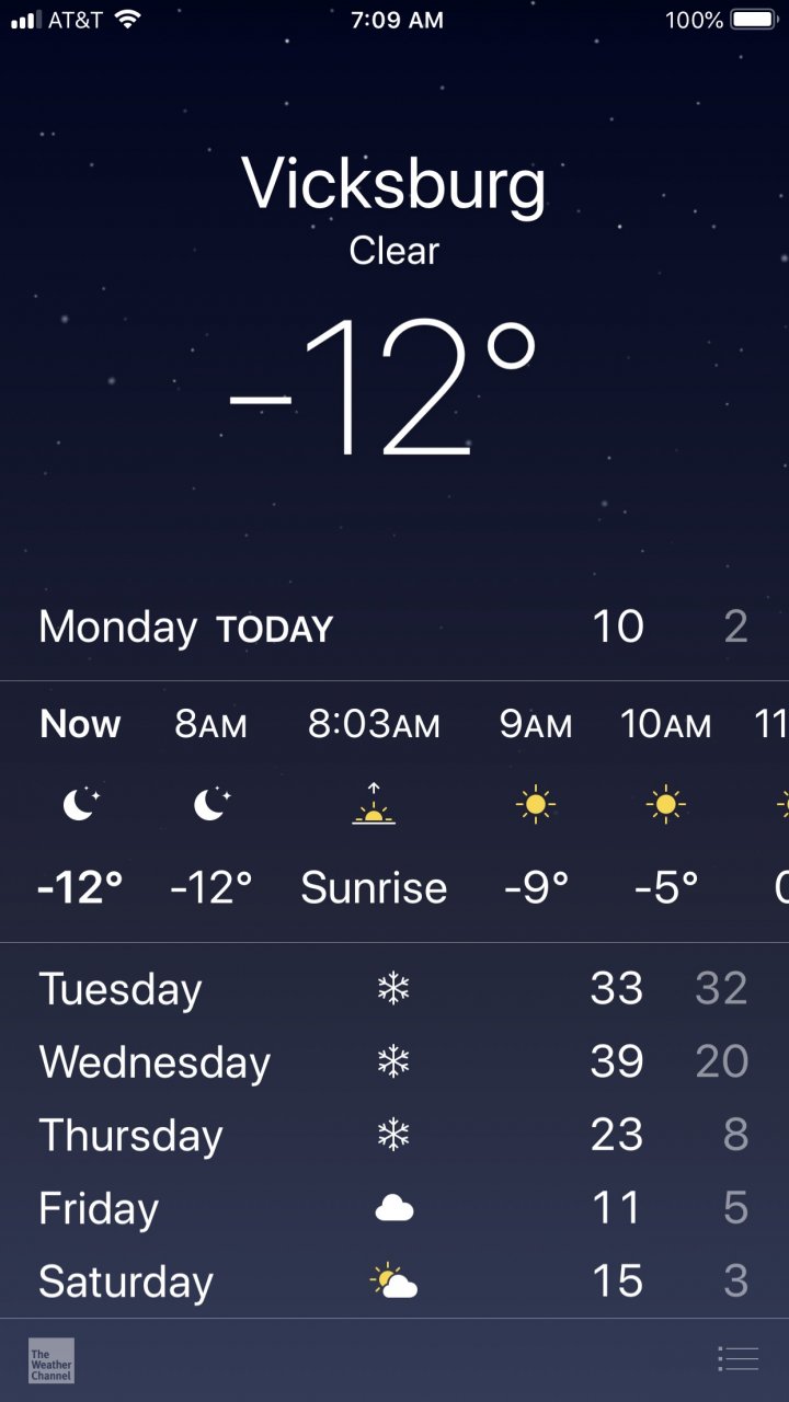 Actually, at least in Southeast Idaho we are having our January thaw with temperatures above freezing during the day. I'm guessing it is mild where @sawmill is as well.