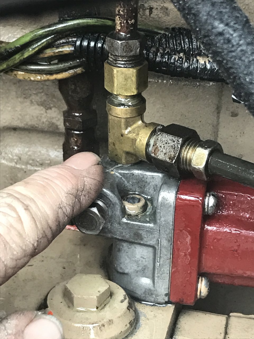 Stopped for fuel in Newcomerstown and found fuel behind the sleeper on my step! Darn brass Tee on top the pump has broke in the threads.... really sucks lol! Time to get the scalpel out. IMG_7687.JPG IMG_7694.JPG