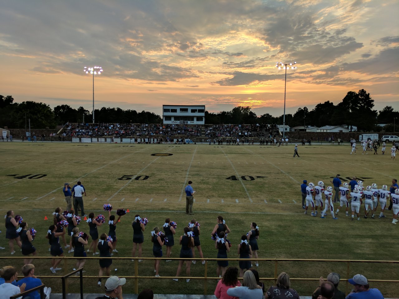 A real old stadium, rock walls and stands with concrete seating, the baseball stadium is next door, very cool setting, small town America at its finest. We won 36-20!