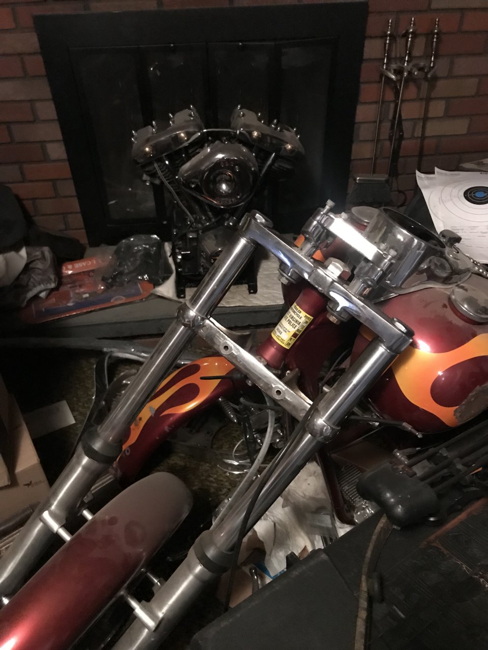 I need to pull the wiring up thru the bars. Never got to it. Then something like that would work ok. Came with Minni apes, I changed triple tree and put the drag bars on. -