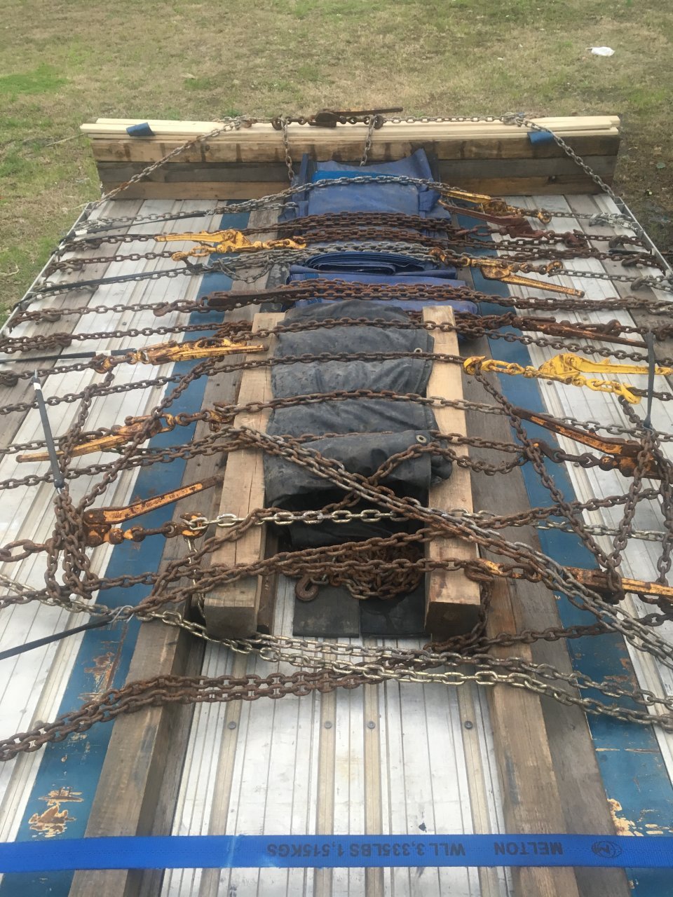 Headache rack and a half or so. There's more chains under the center tarp... and roughly 8 pocket stakes lined up underneath the padding tarps in the back....