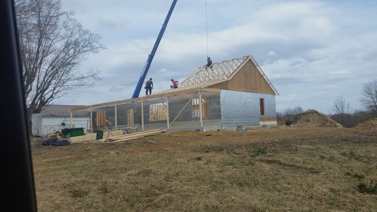 These Amish folks don't screw around. Started with a bare basement and at 2 pm had this much done ! Was told 120 days to complete. I'm thinkin more like 60 days. LOL