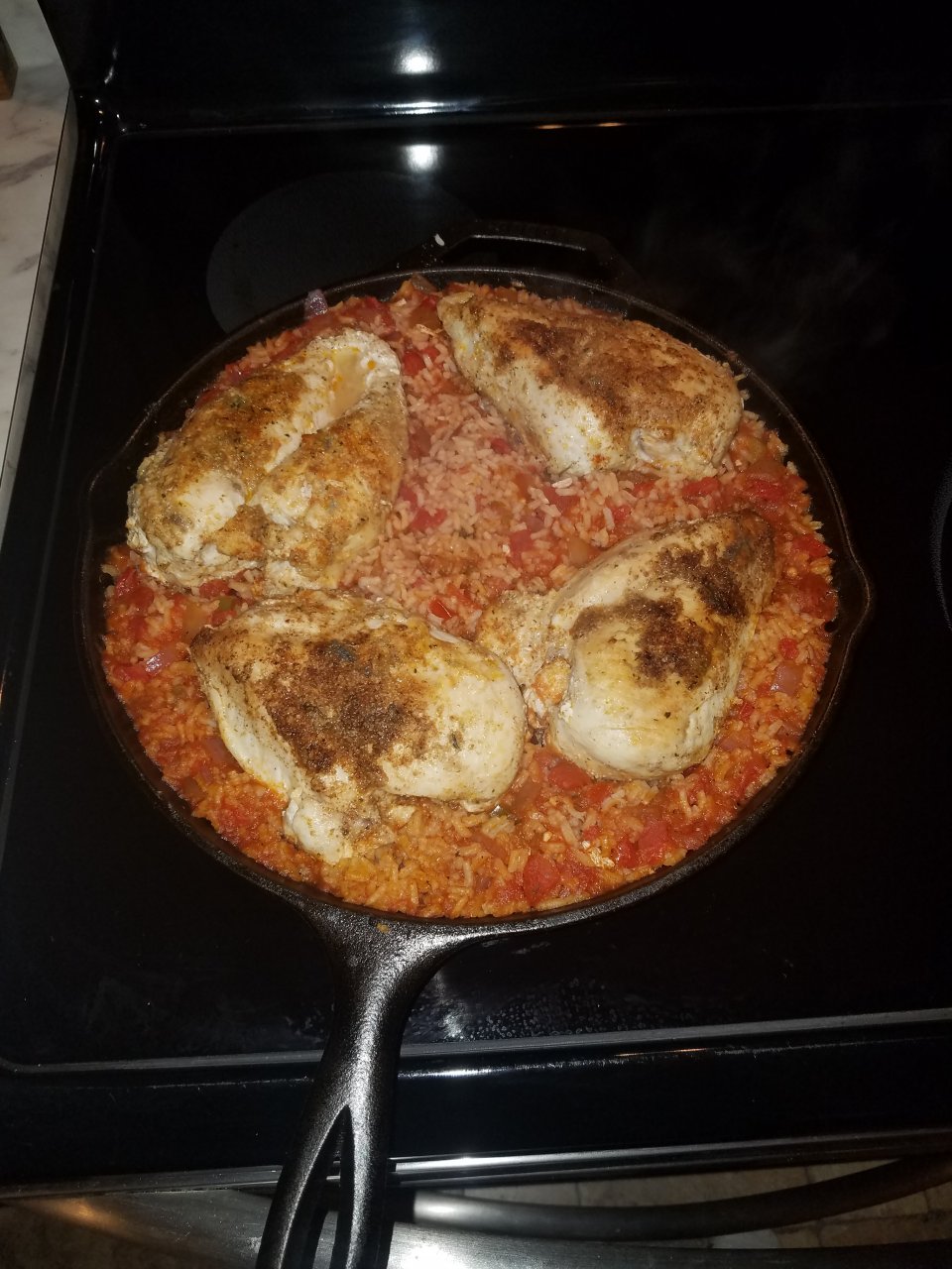 Well @catalinaflyer is too busy hauling Boeing parts! to judge but dinner tonight a one pan wonder. Mexican chicken with chilli's and rice.