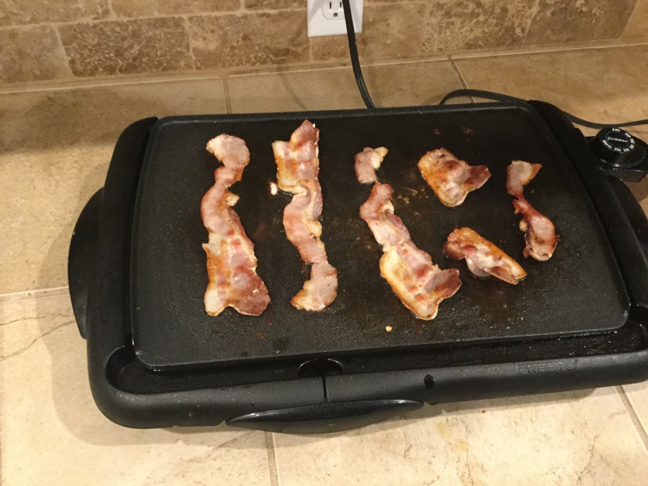 Wife got in late and I’m trying to let her sleep. Oldest wanted pancakes and bacon although I usually go get them donuts on Sunday morning. It saves me the trip in this windy rainy weather.