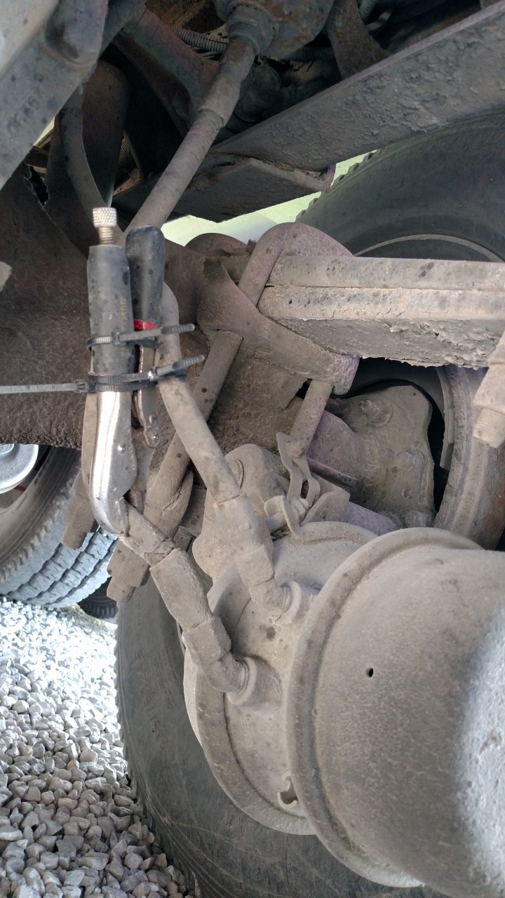 Aint that bad, dont see no fluid leakin out yet... best bleed em good to get all the air out once its fixed!