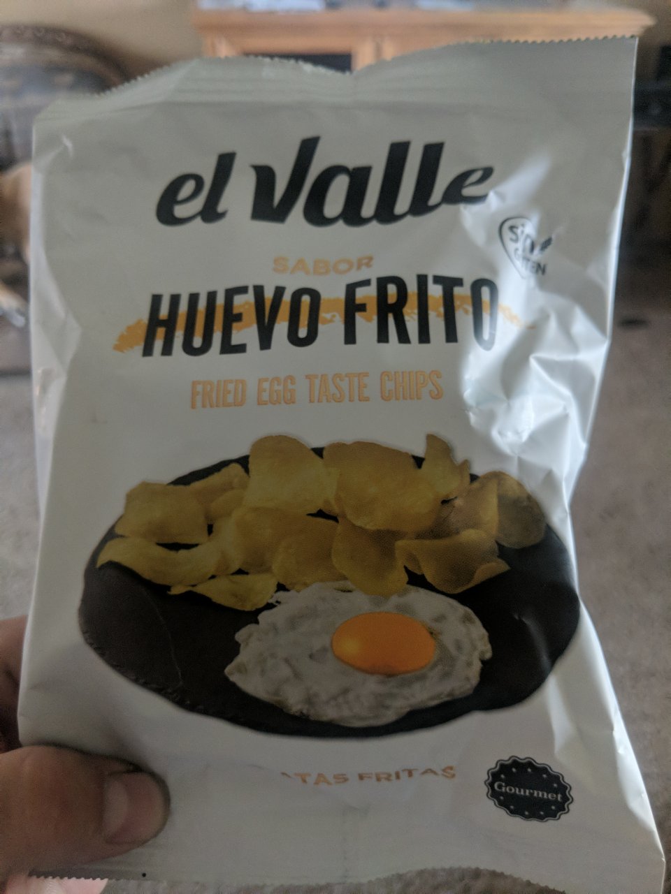 Another one from the Brazilian snack box...fried egg flavored chips. Not my idea of breakfast.