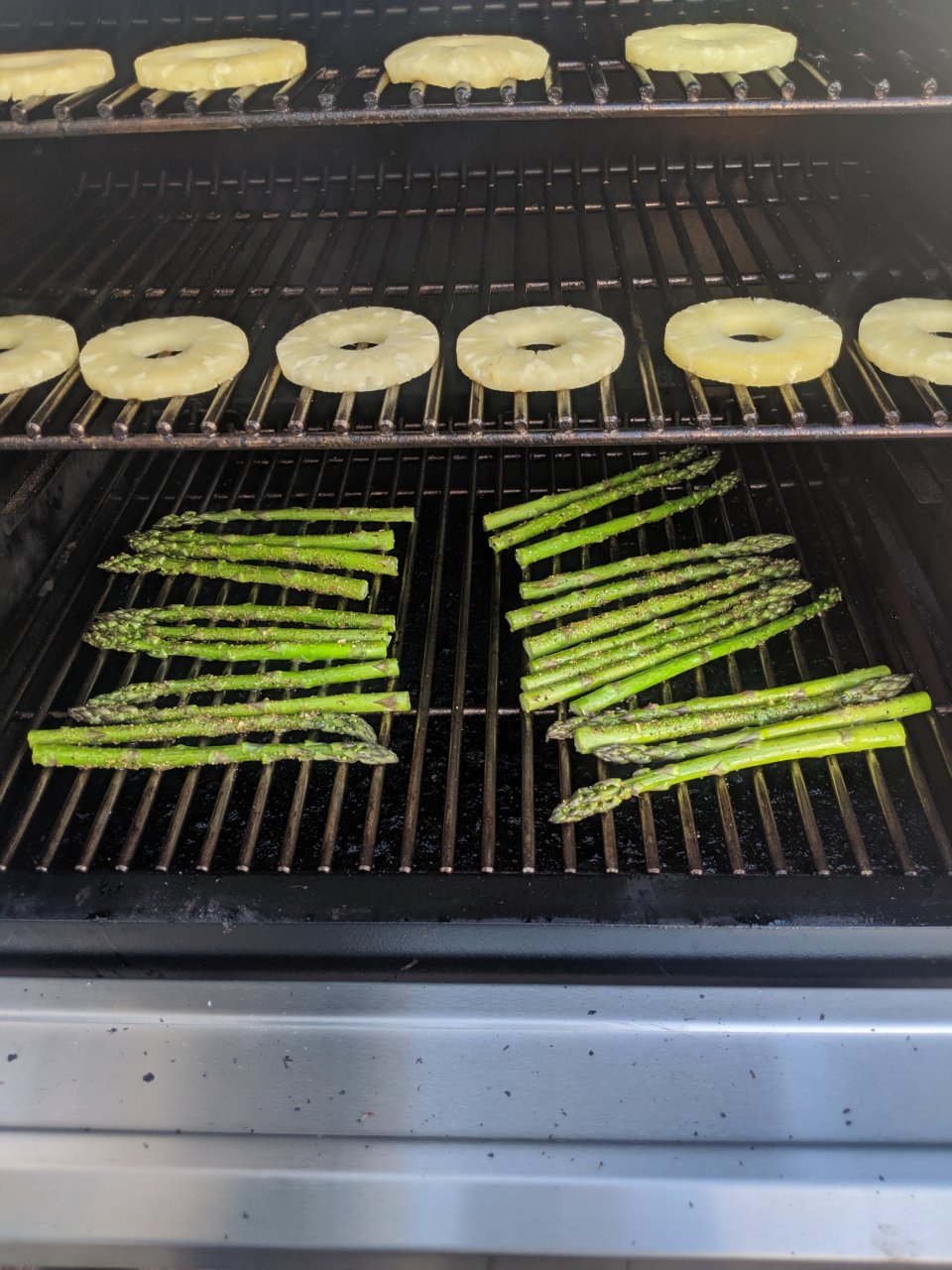 Can't see not using the smoker even if she doesn't want to so we put some asparagus on.