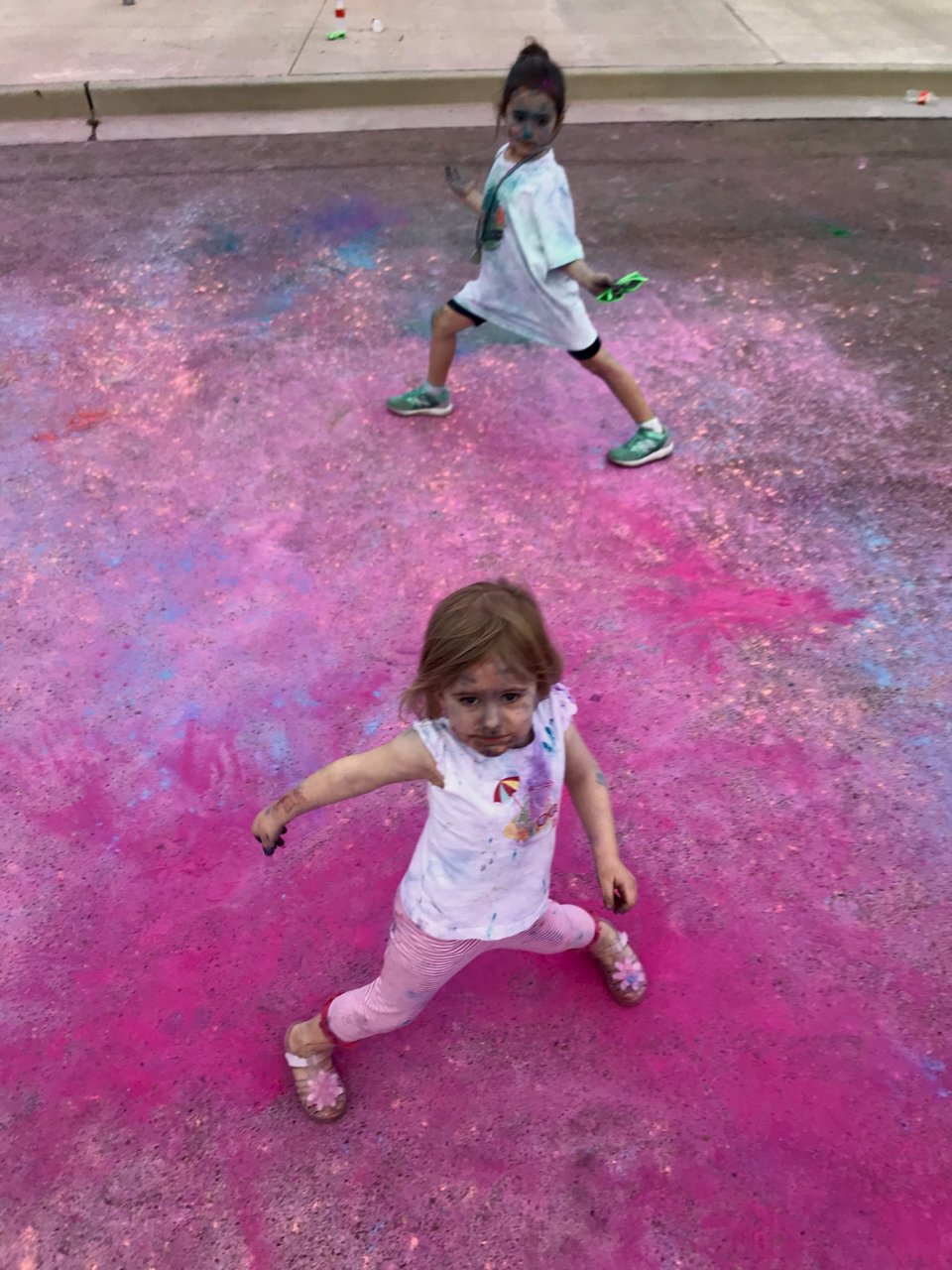 Breaking out some dance moves after a color run where they throw powdered colors on the runners.