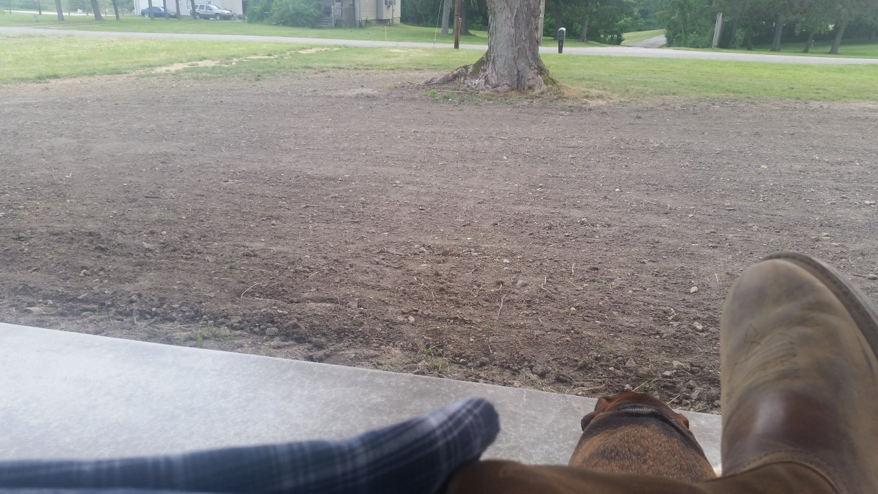 20190604_195206.jpg Watching my dirt yard trying to push some grass up.....i see a couple of blades, but me thinks they are weeds.