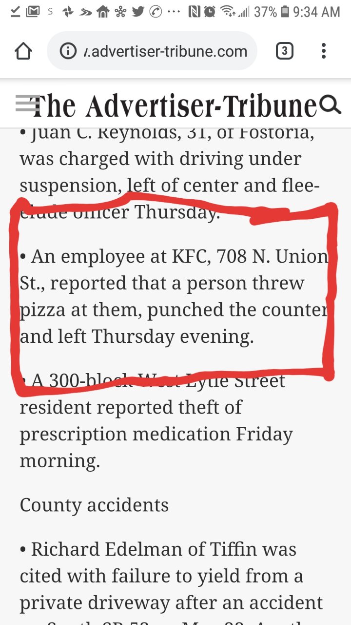 Can't say as I blame him much. KFC makes lousy pizza. Always putting fried chicken on top even when you tell them 'no chicken !'