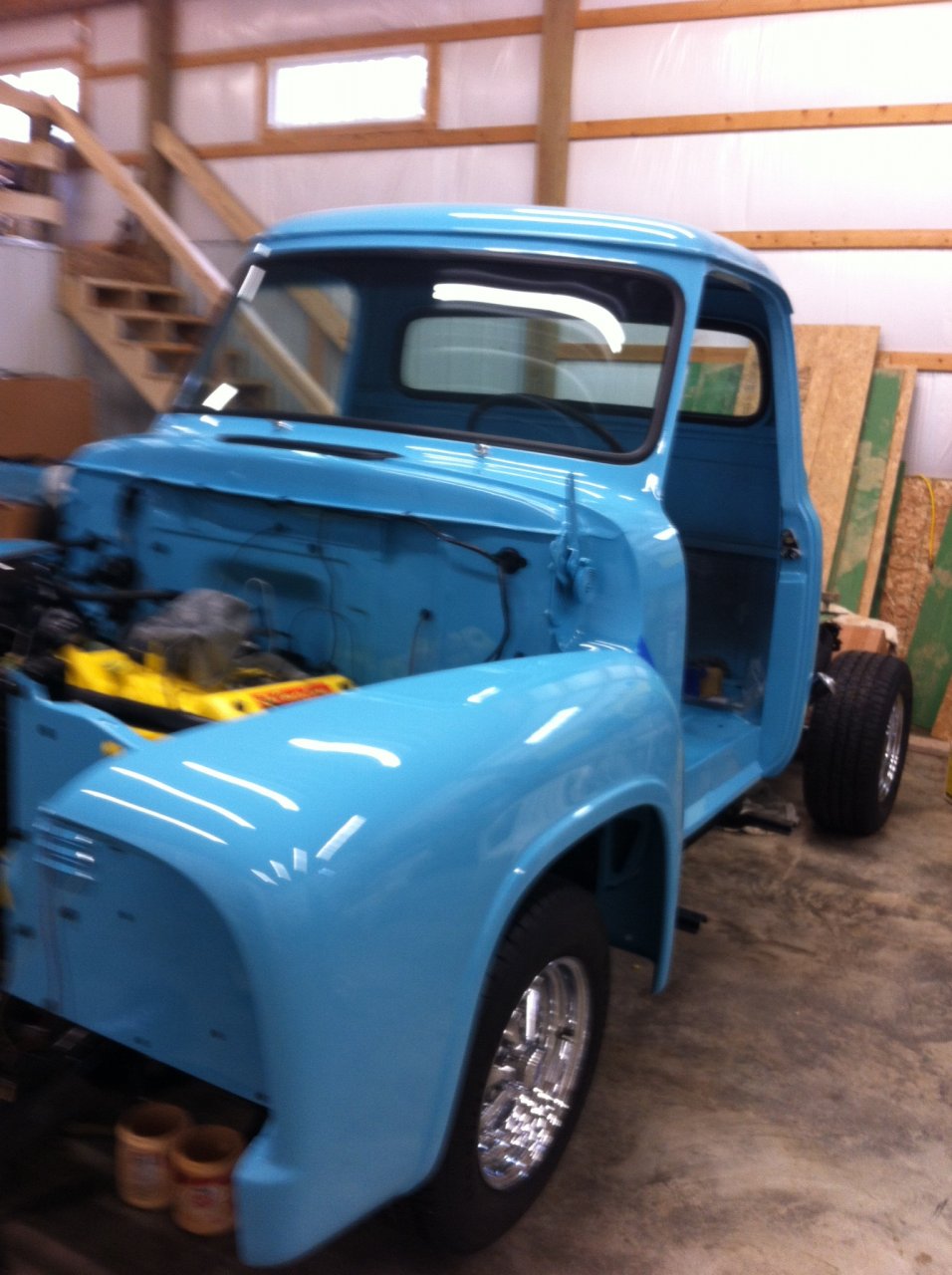 @1951 ford , thought you may enjoy this. Freind I grew up with owns it, slowly getting it back together after a 30 year nap lol. 1955 F100, original V8 3 in the tree.