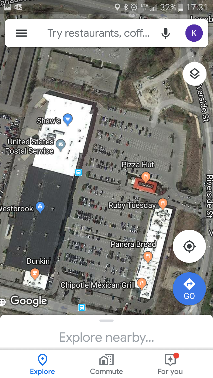 Shaw's (and the plaza - a few food options there), up the road, guys pull 10's in there often. That little space in the upper right corner is the remains of a demolished gas station - guys sit for 10 there as well. Fireside Inn, across the street from the plaza has a pretty decent restaurant too.