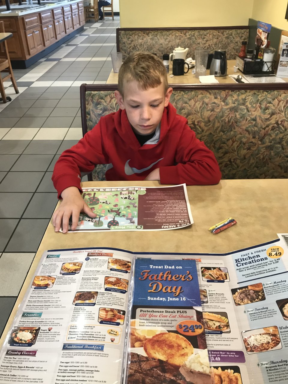 Sounds like he’s got good taste. Me and the wife and kids just went down the street and ate breakfast. I had fried chicken breast with Tabasco honey and a waffle with syrup. I’m not much on breakfast food, but I can eat dinner type food anytime.