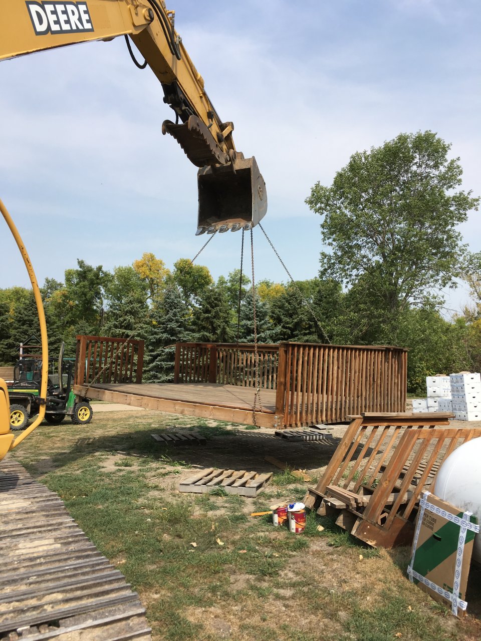 I decide to see if I could get another load on. My boy is just pulling out...half a hopper left in the bin...Don's in the bin. This old fella we're helping out is pretty good sized...around eighty years old...and had a hip fused as a kid. Needless to say he doesn't get around well. I get backed in, fire up the vac and crawl in the bin. We get it cleaned up...he pushes the hose around for me with his walking stick.
