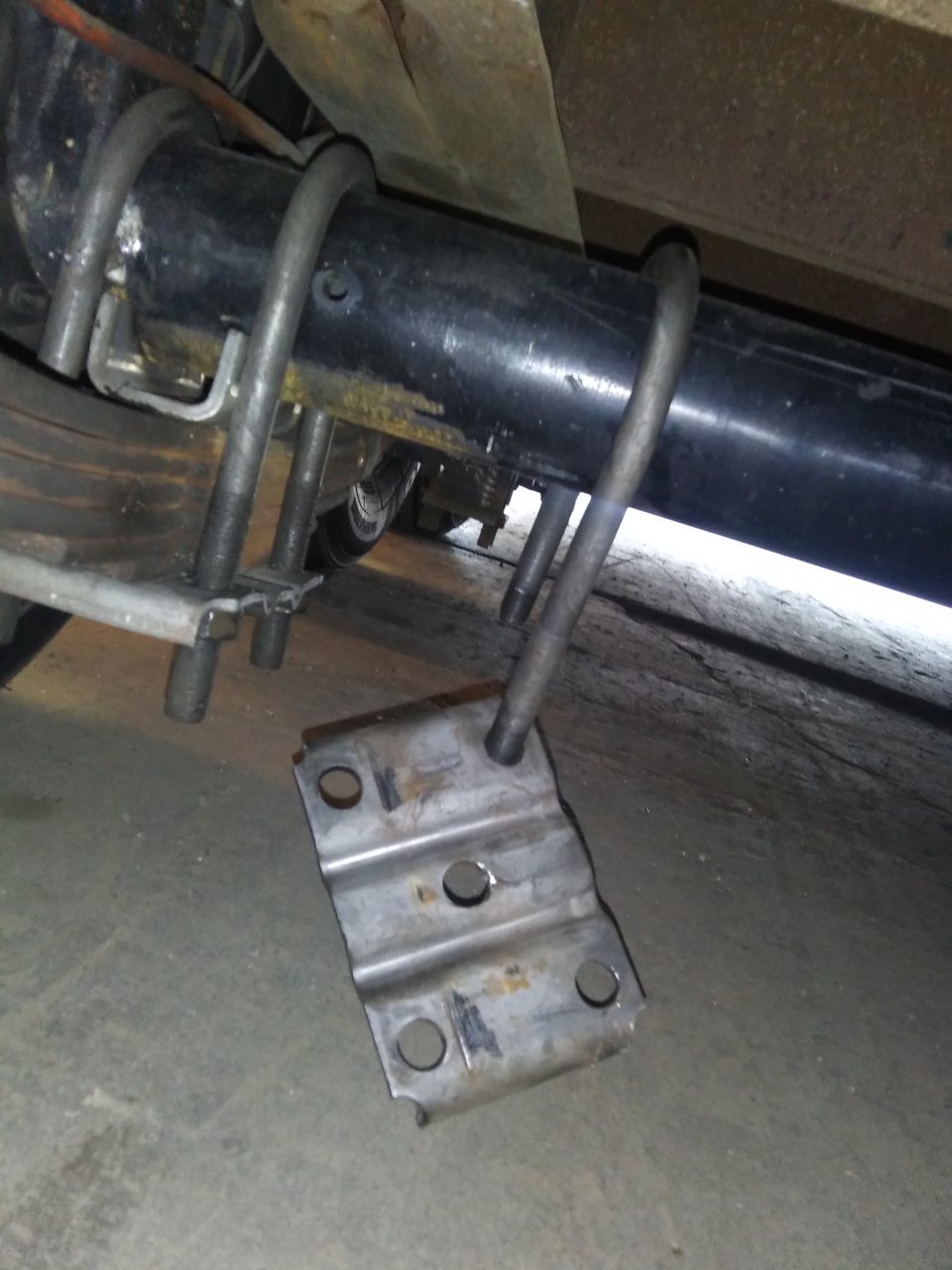 Not only did the U-bolts come loose/fall off, but so did the shackle brackets and both bolts.