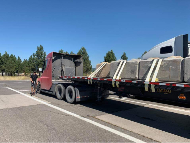 Tesla testing it's ride came thru Donner pass. With 75,000lbs of concrete (testing purposes only)