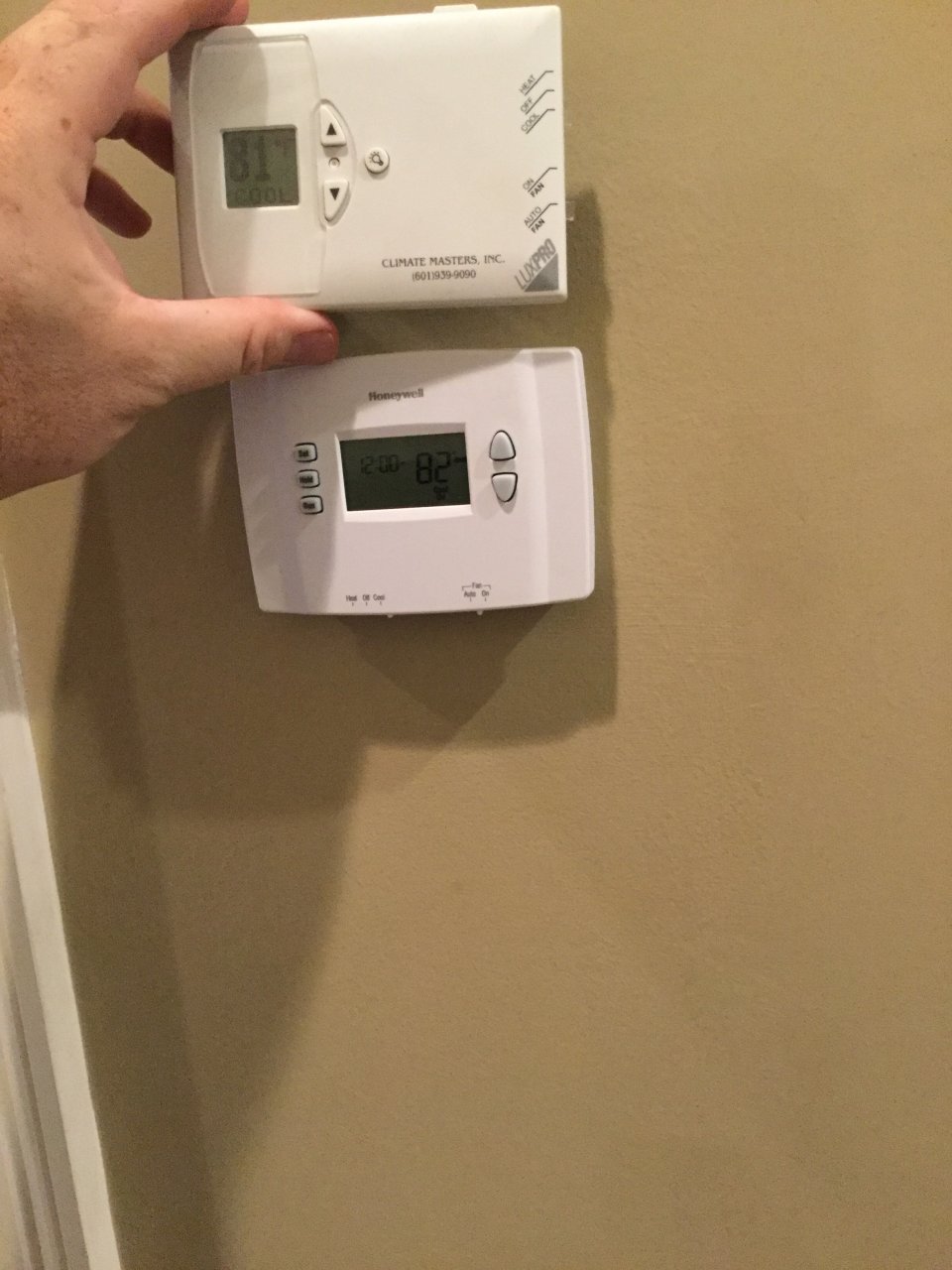 I came home and the a/c breaker was tripped. That happened a few times in the last month. The thermostat gets stuck on a certain temp setting and the unit just runs non stop since it can reach the desired temperature. So I had the wife pick up a programmable Honeywell, just got it finished up.