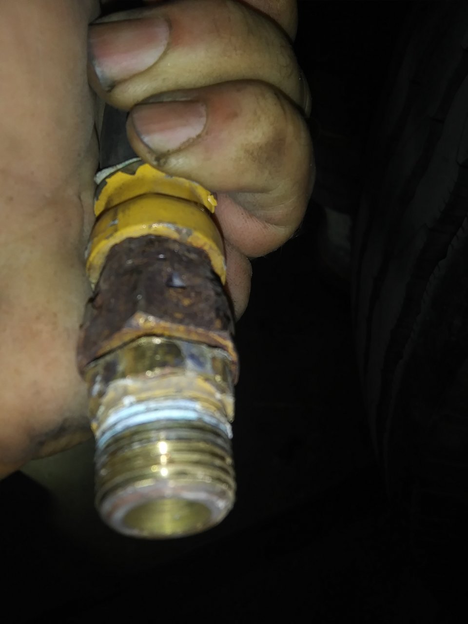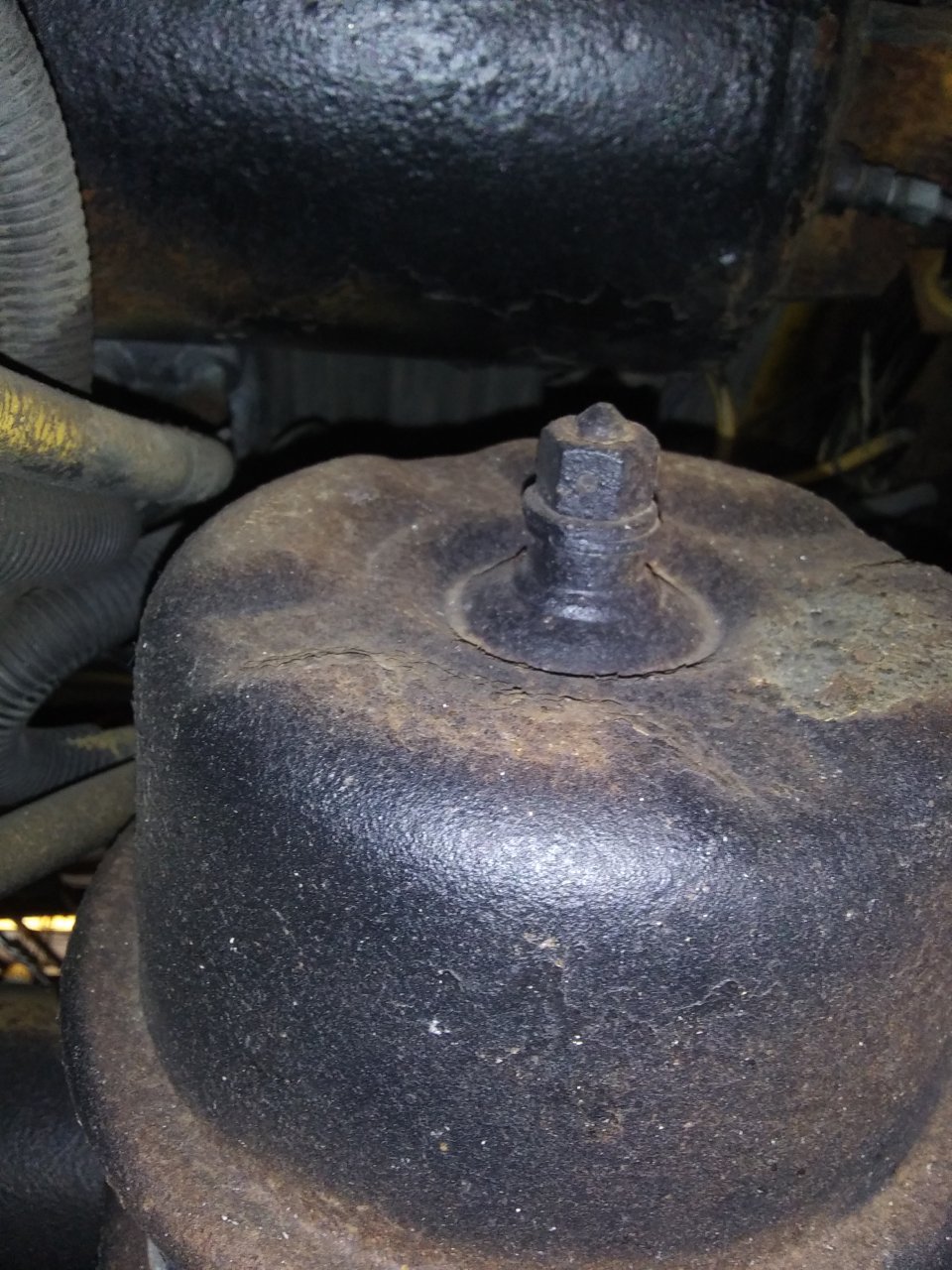 The white colored spot on the rusted nut is a hole that has rotted through.
