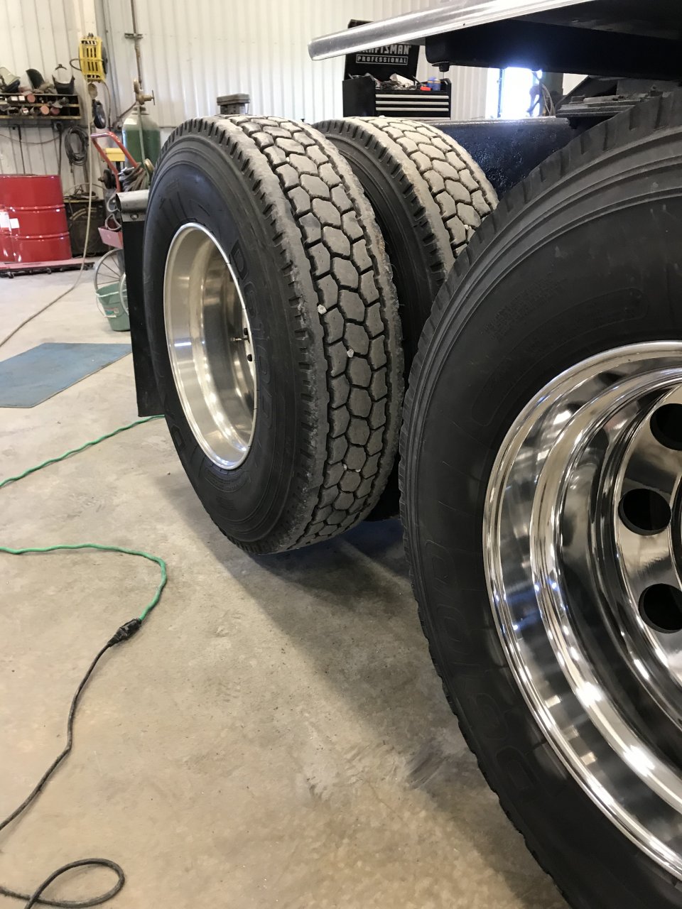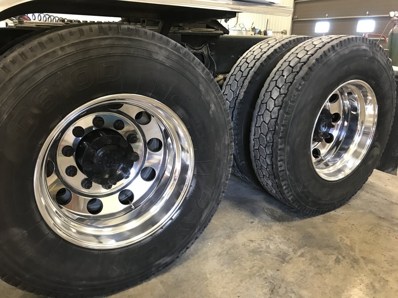 Got the rears all x rotated and polished. Top pick front had some polish rear not touched. Bottom pic is all finished up. I finished last week with a load on so I got to deliver in the morning then back here to continue polishing.![]()
