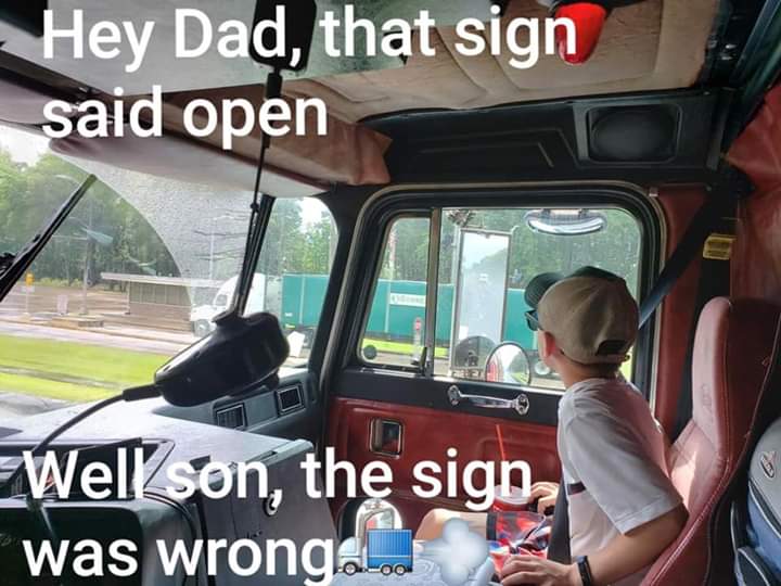 Was sitting next to Dad at the truck stop looking over his shoulder when he was filling out his log books... I looked and said that we weren't there then! Was all I could do to keep my donkey in the chair when he elbowed me!