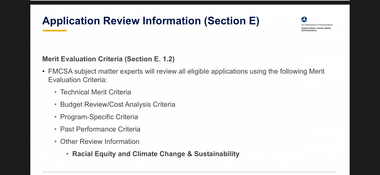 it’s been part of the application review for years 2021-2024 so figure out why then. These grants filter down to smaller entities down the training line. I know of one cdl school in san Antonio that had to allot some of the money given to them to take over the dps driving tests for construction of a walking trail along a creek in the ghetto side of town where they were located.